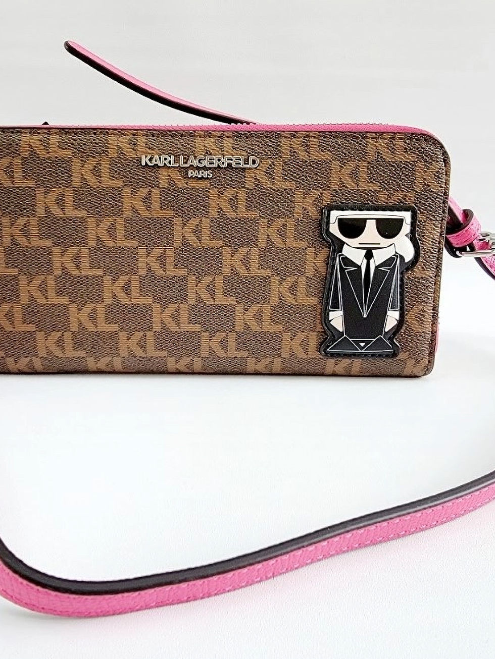 Materiál: Kvalitní umělá kůže Barva: Hnědá s monogramem "KL", růžové detaily a černými prvky
